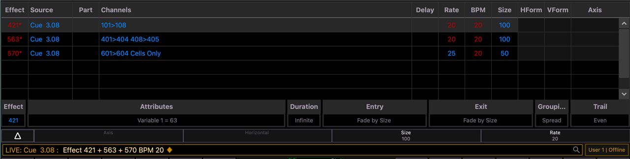 Is there a way to select multiple effects that are running, to be able to change size and rate, I know it's not possible to alter BPM on multiple effects.