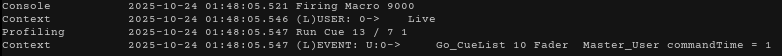 I admit this might be a somewhat nontraditional approach to pressing go, however it saves me time by not having to create individual midi trigger events for every cue I want to see in time with what I'm programming. Any help appreciated.
