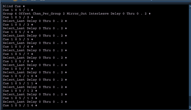 "You could write some Delay macros to overwrite the delay data in the color cue lists so they would ripple the change from outside to in, inside to out, right to left, etc."