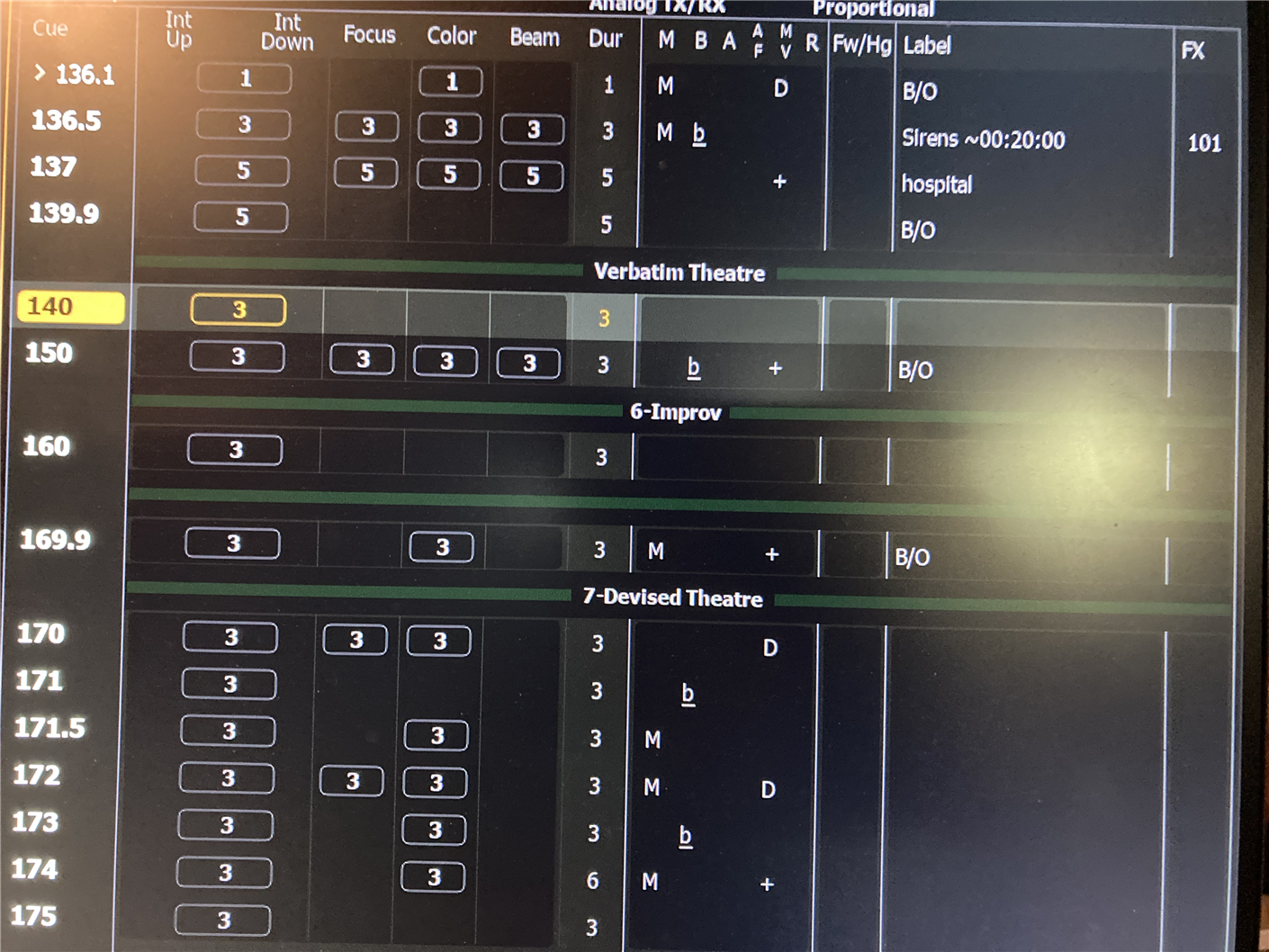 There are about two of these blank strips in the cue list (we only have one cue list).