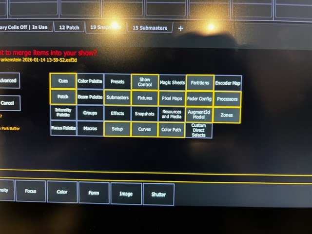 We need to go to server/backup and click to continue. Since we have an APEX in the auditorium, it will be a bit of a run up to server/backup when we save our showfiles.