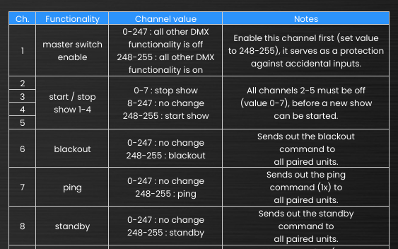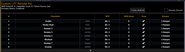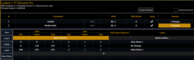 I'm creating a custom fixture profile for a Pyroterra Lighttoys FT Remote Pro. This device plays an audio file and also triggers numerous LED props from Pyroterra.
