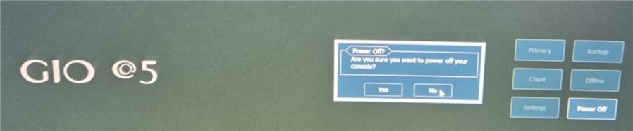 After the usual power down sequence from the CIA the system hangs with the display showing as below. This screen basically sits there and he cannot get any further and no amount of clicking on 'YES' has any effect.