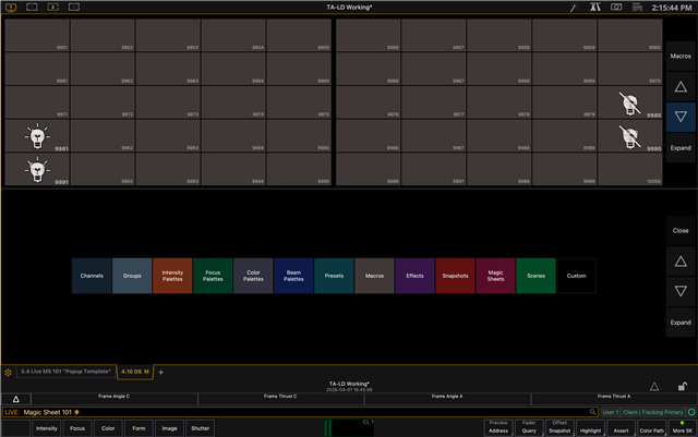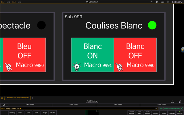 Same macros displayed on the magic sheet: