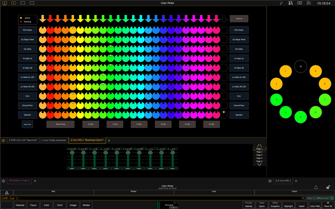 Query Is In Color Palette 1003 || can't select by being in "Pending", because eos is in the .1 cue just stuck at the very beginning bc manual timing.