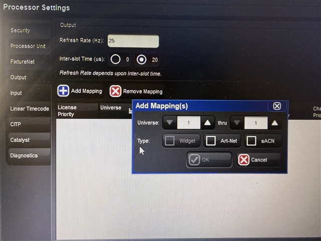 I loaded a new show and patched 4 fixtures and when I go to Setup > Network > Settings i cannot add the Widget as an output.