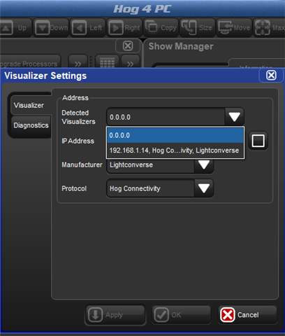 When running both HOG PC and L8 on the same machine, you’d normally head into Visualizer Settings and select your device from the Detected Visualizers dropdown menu.